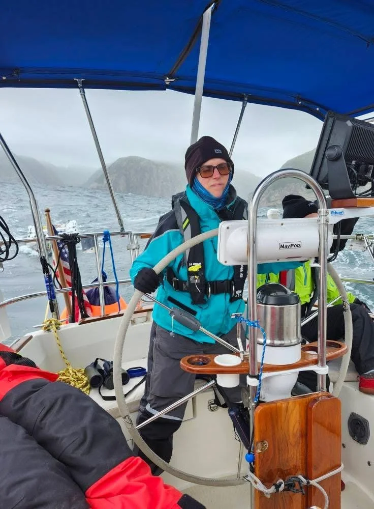 You can see by my face in this photo that I had lost my "inner calm." I was at the helm trying not to get seasick (after that day I put on a seasickness patch).